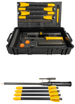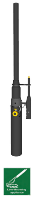 Et selvstændigt line-kasteapparat bestående af en plastikkasse med en endehætte og 250 meter line, en integreret slagmekanisme plus en raket.